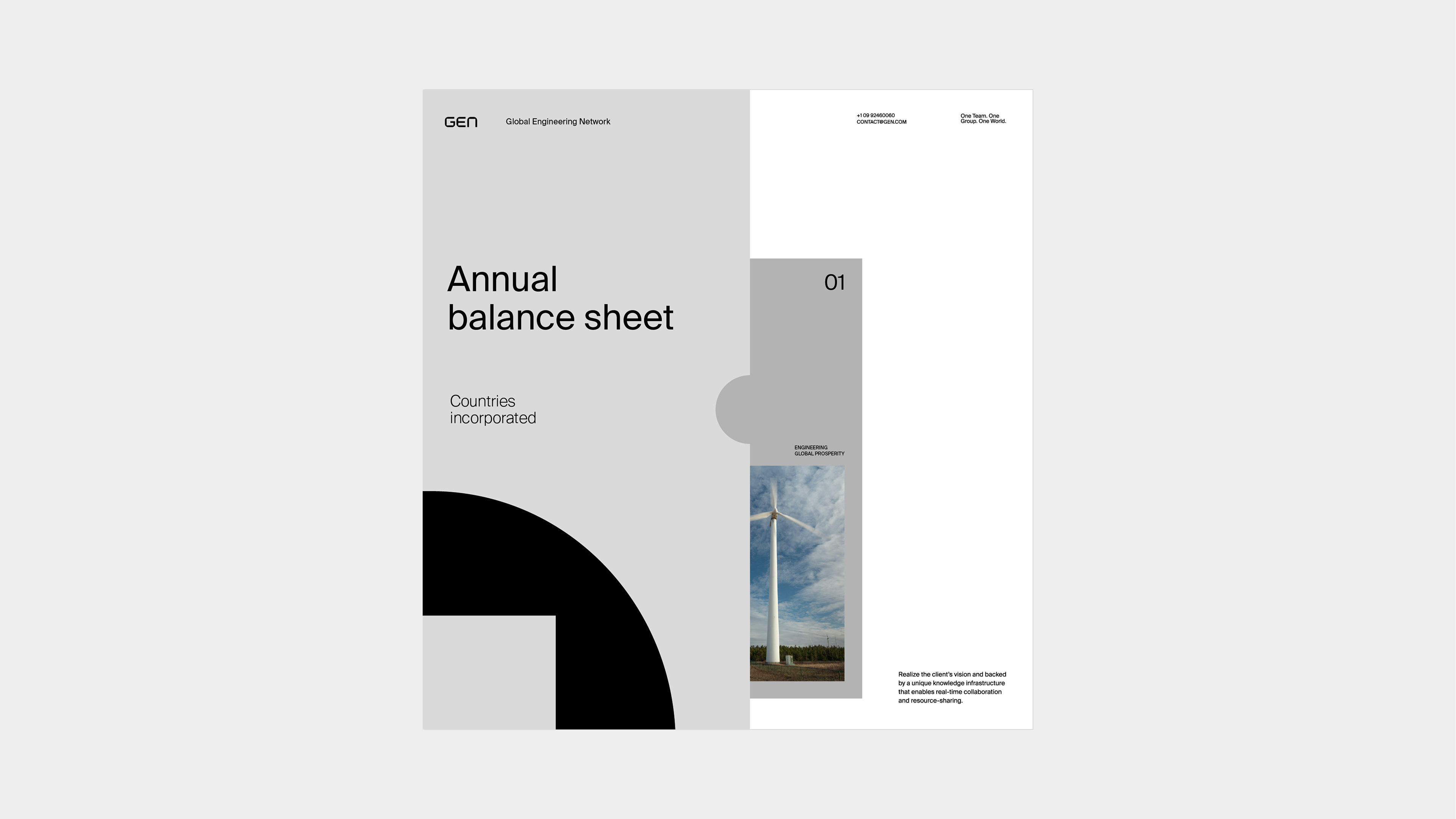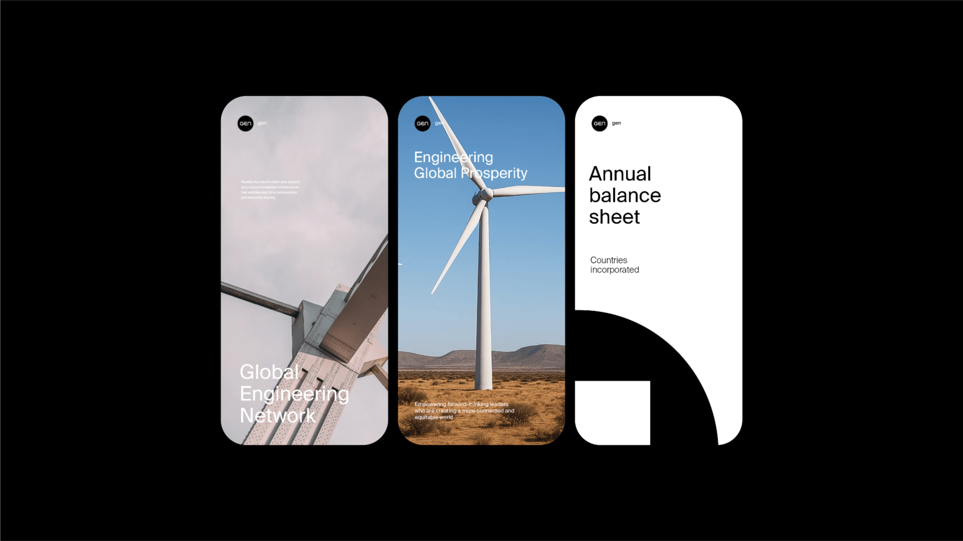 Future Forward invited Reino to create GEN’s visual identity as part of a broader brand strategy. The goal was to craft a flexible, professional design system that could unify a global network of operating companies while expressing GEN’s commitment to engineering innovation and global prosperity.