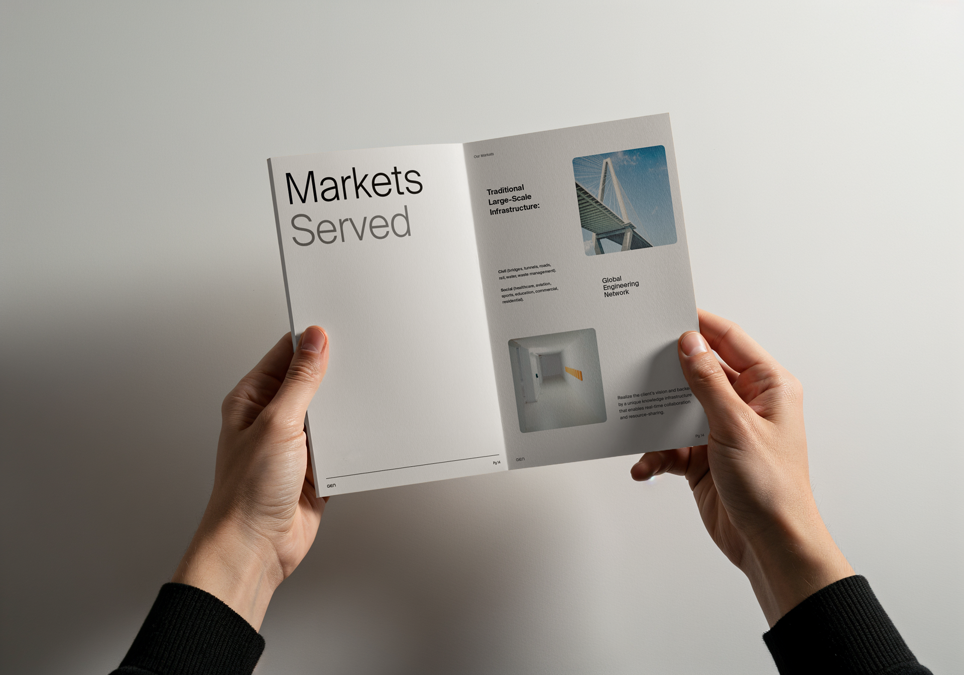 The identity is built around custom typography inspired by engineering and architectural precision. Circular exteriors convey adaptability, while linear interiors express discipline. Neutral colors, textural cues from concrete and steel, and Suisse Int’l typography reinforce clarity, resilience, and professionalism.